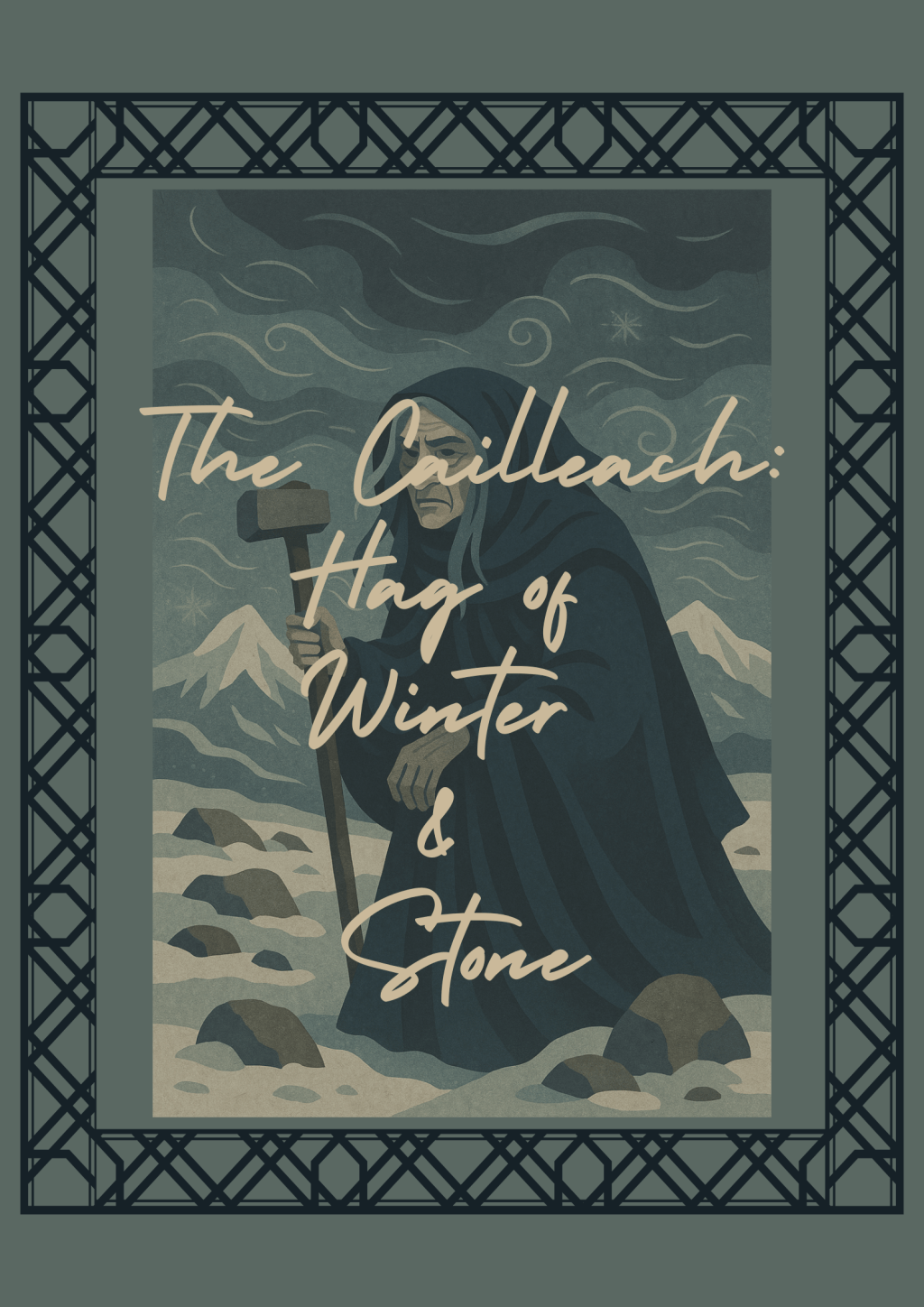 The Cailleach is one of the most ancient and mysterious figures in Celtic mythology. Known as the great hag or crone of winter, she is a goddess of storms, mountains, and stone. Fierce and formidable, she represents both the harshness and wisdom of the natural world.